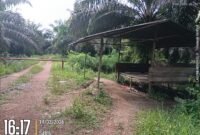 Pantauan di lapangan menunjukkan akses kebun dilengkapi portal pembatas dan pondok penjagaan di pintu masuk.
